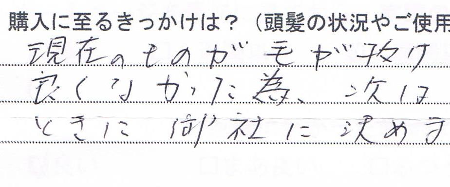 かつらは35歳から2社で35年以上です。 今使用中のかつらは都内で作って、一度修理しましたが傷みが出始めているので、次のものを探していたらネットでたまたま見つけました。 かつらオンラインでは電話やメー […]