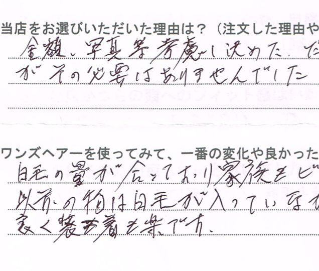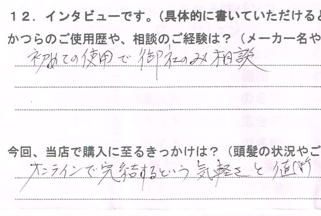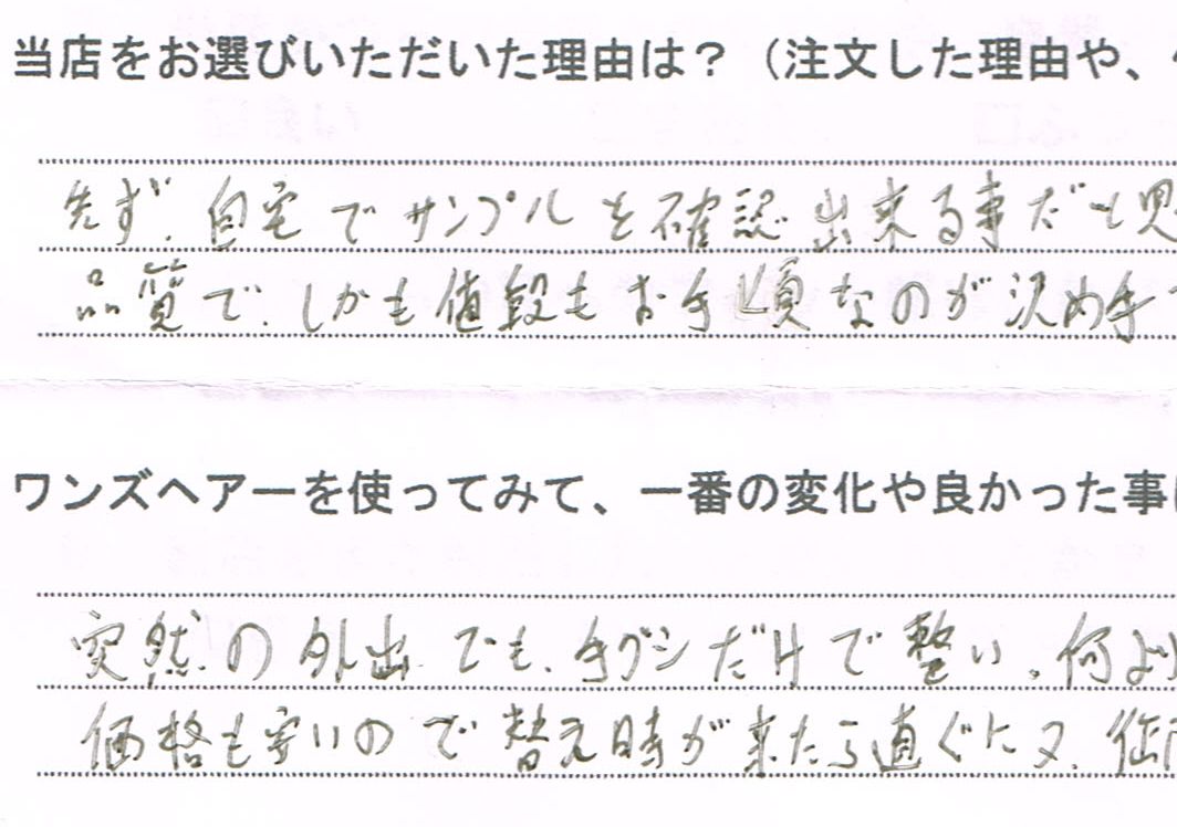 テストかつらオンライン > お客様の声
