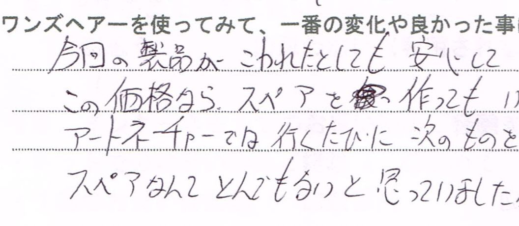 かつらはAN社の製品を20年以上使用していました。 その間、合計3つ作りました。 次のかつらを作らなくてはいけない状況だったが、有名メーカーのものは高過ぎると感じていました。 &nbsp […]