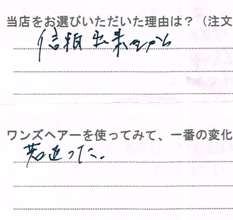 かつらオンラインでは、お客様の声を積極的に取り入れております。