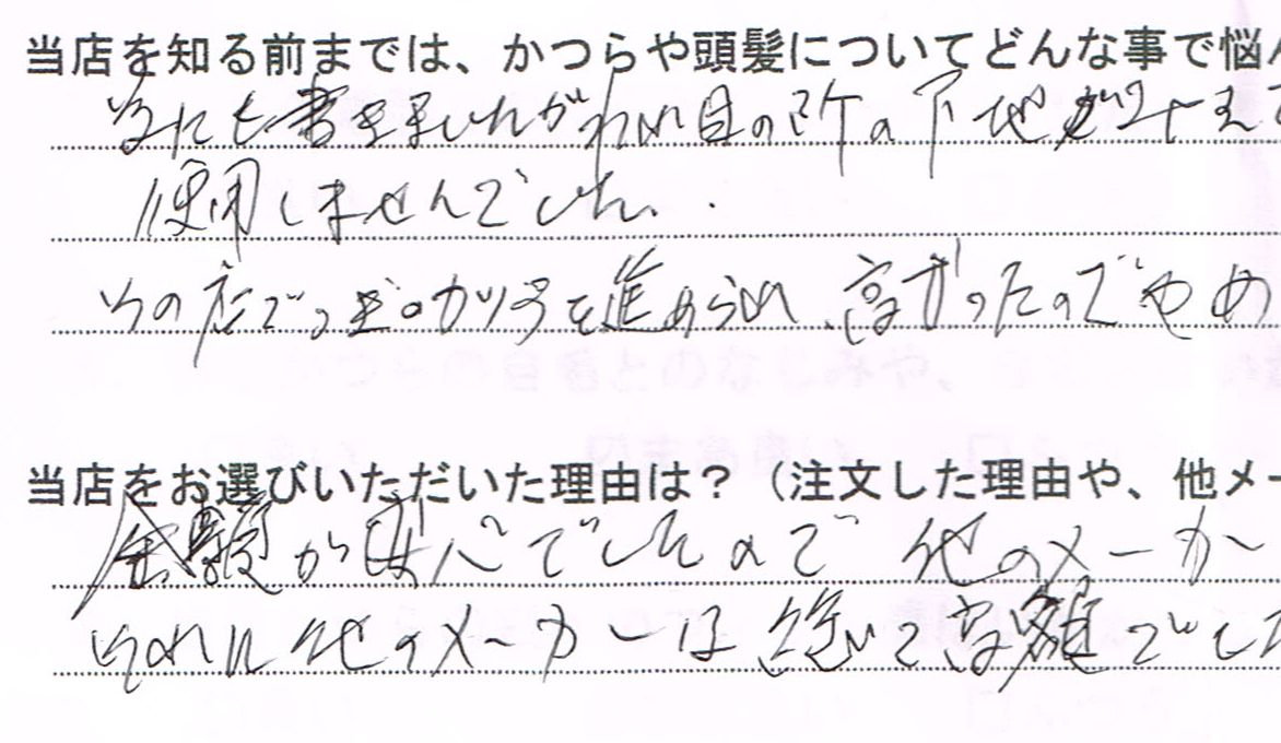 かつらオンラインでは、お客様の声を積極的に取り入れております。