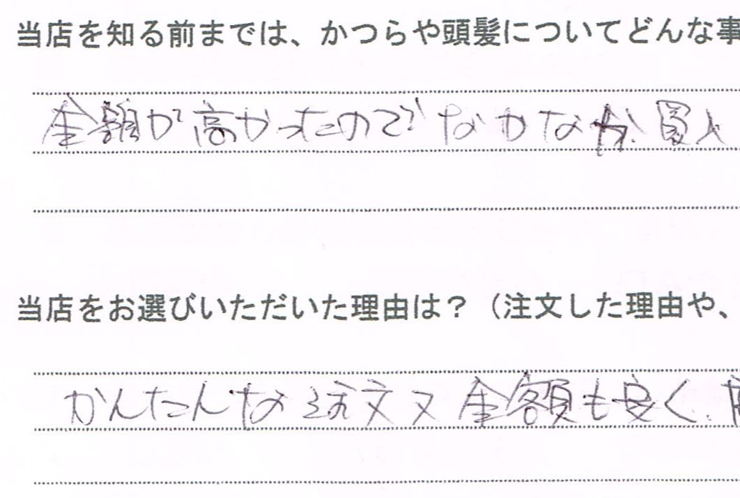 大手で増毛~かつら1か月体験済み(神奈川県)