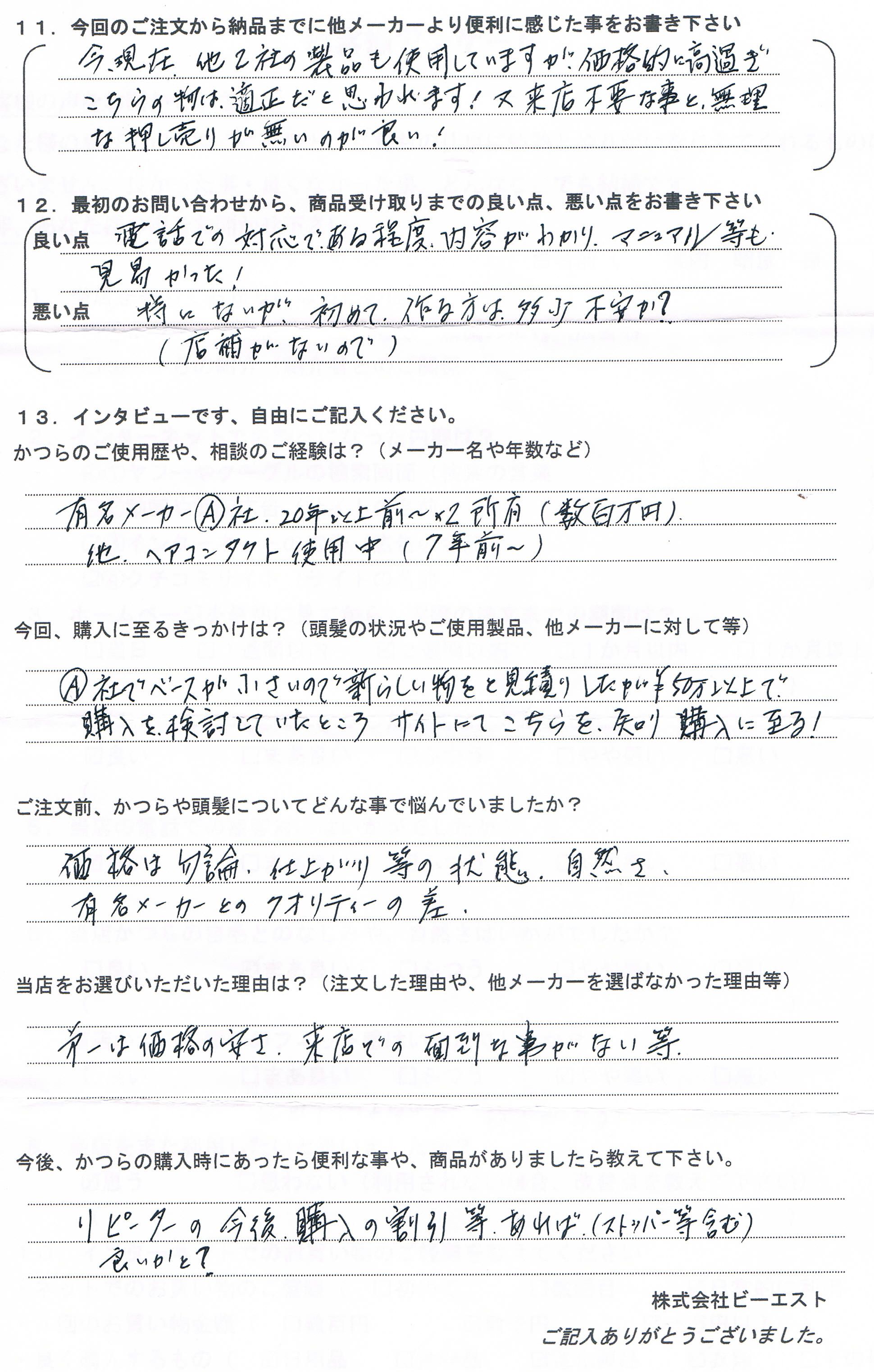 その後、オーダーしたかつらも受け取りまして、イメージ通りで良い製品でした。