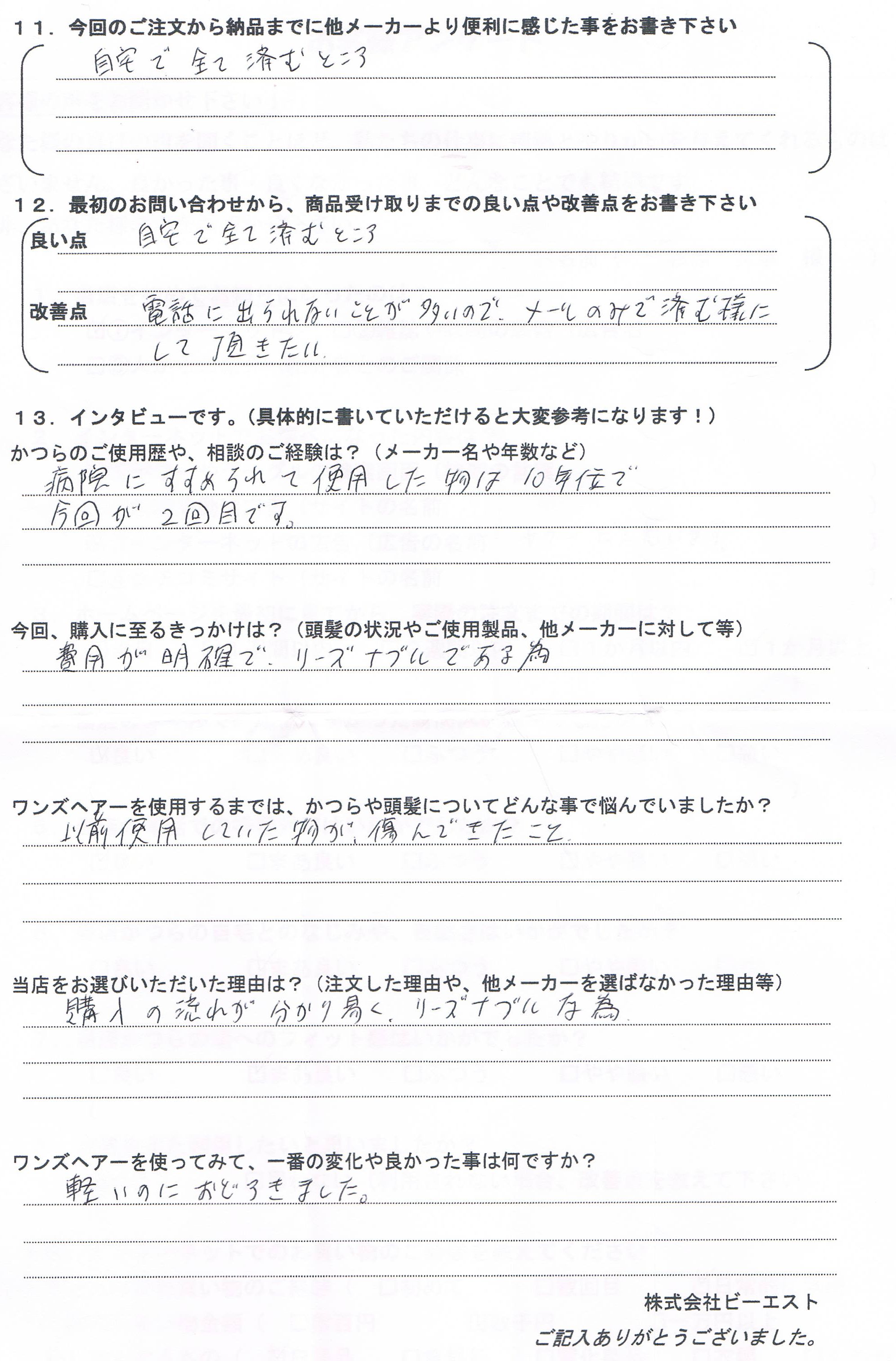 こちらの会社は、全体かつらの注文や納品が、自宅で全部済むところが良かったですね。