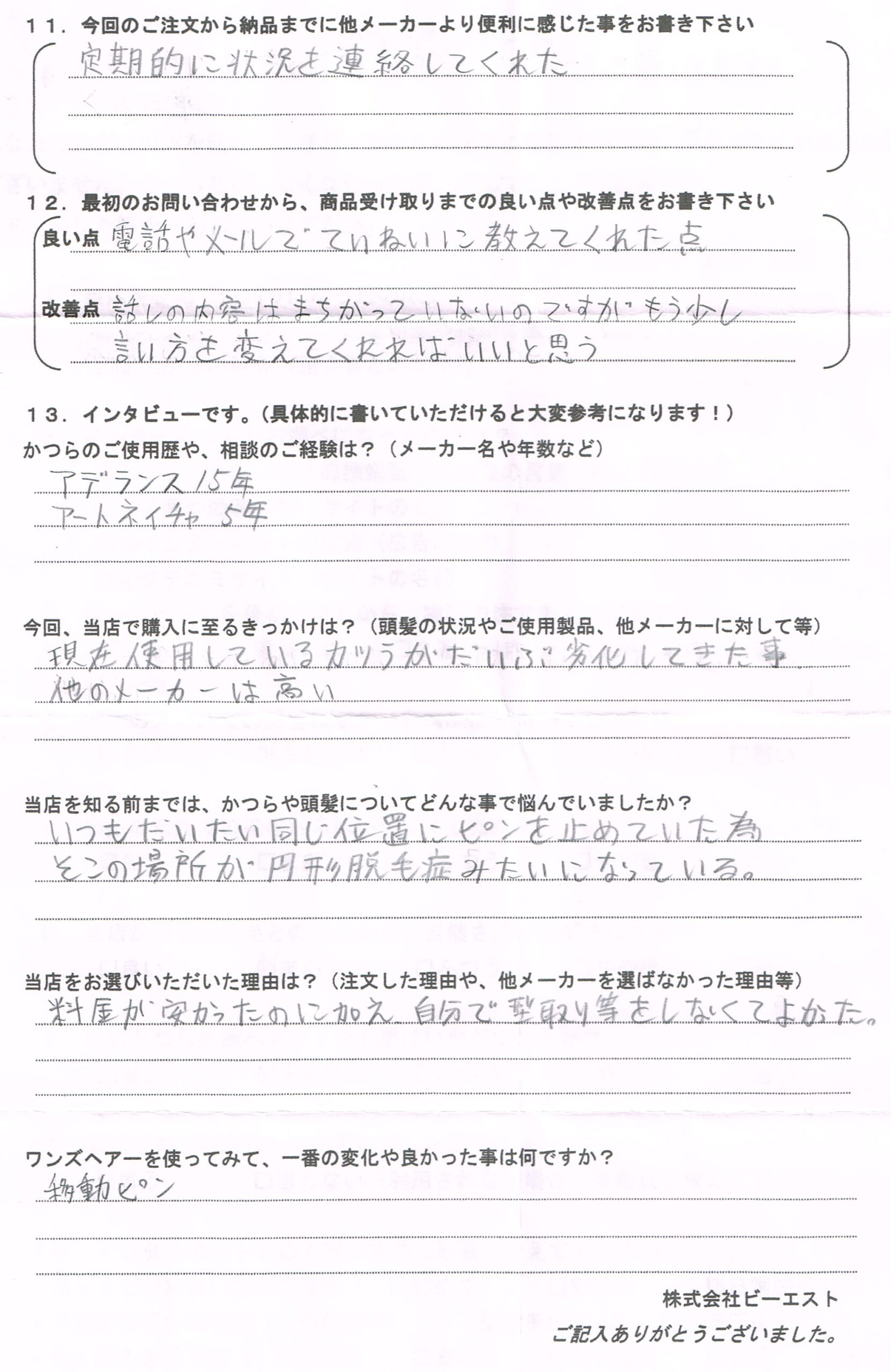 「妻と見て十分納得のいくかつらです。ありがとうございます。」