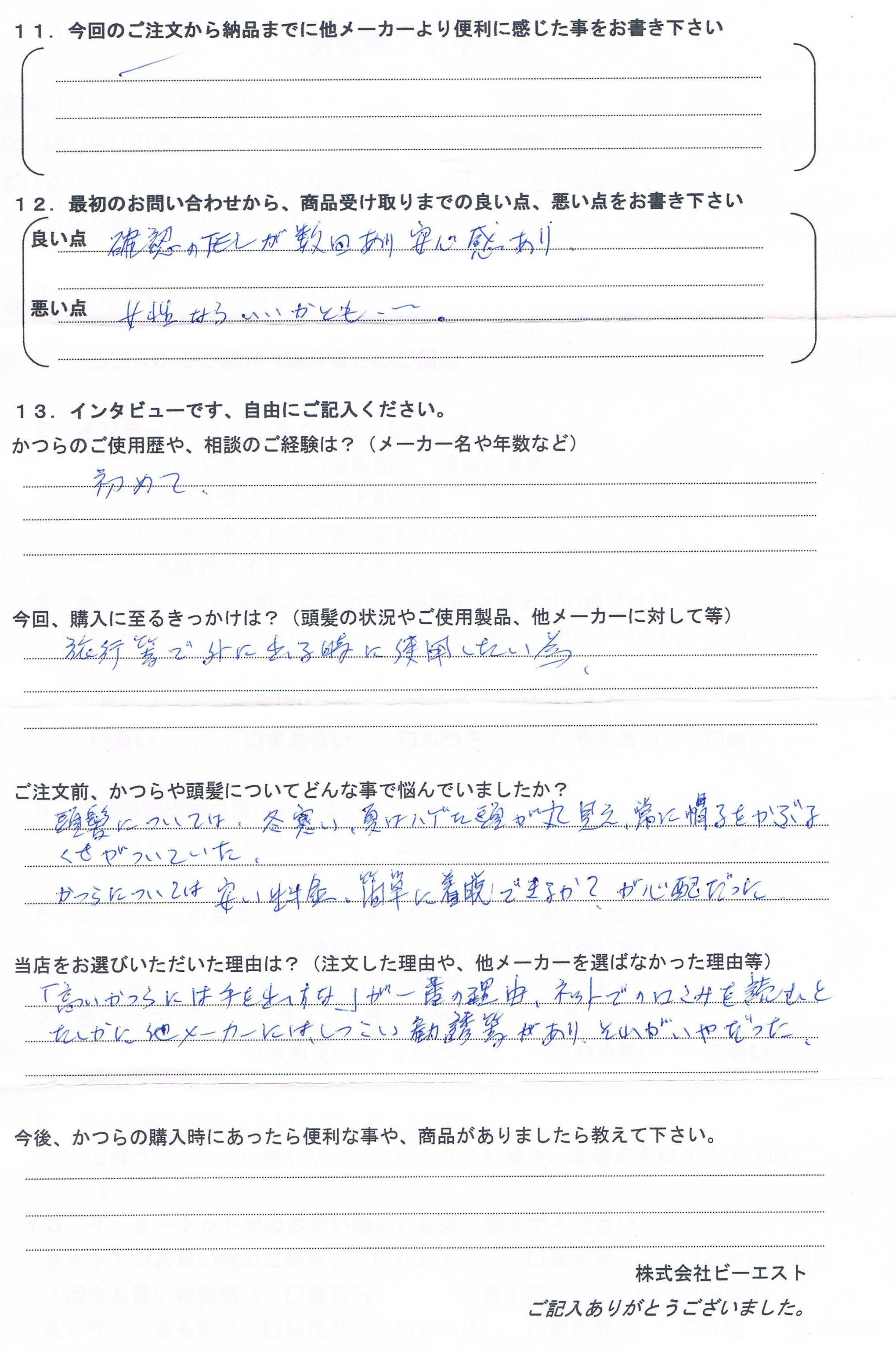 下記は、完成かつらお届け半年後に頂いたメールです。