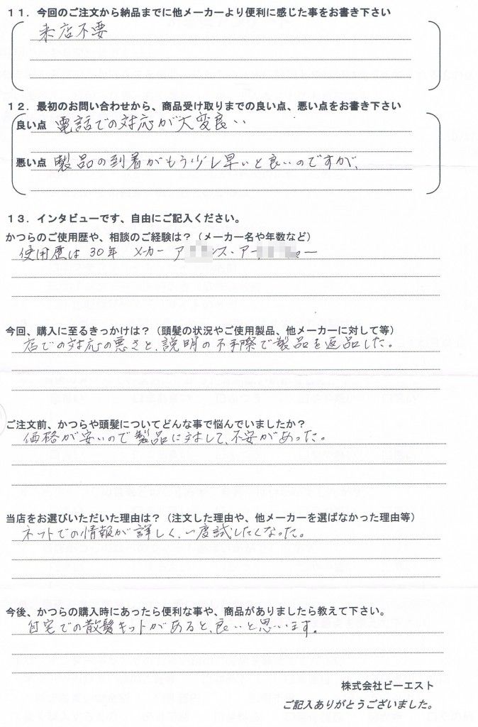 見本のかつらお試しでは、大体イメージどおりでしたので、指示書に必要事項を記入して返送しました。