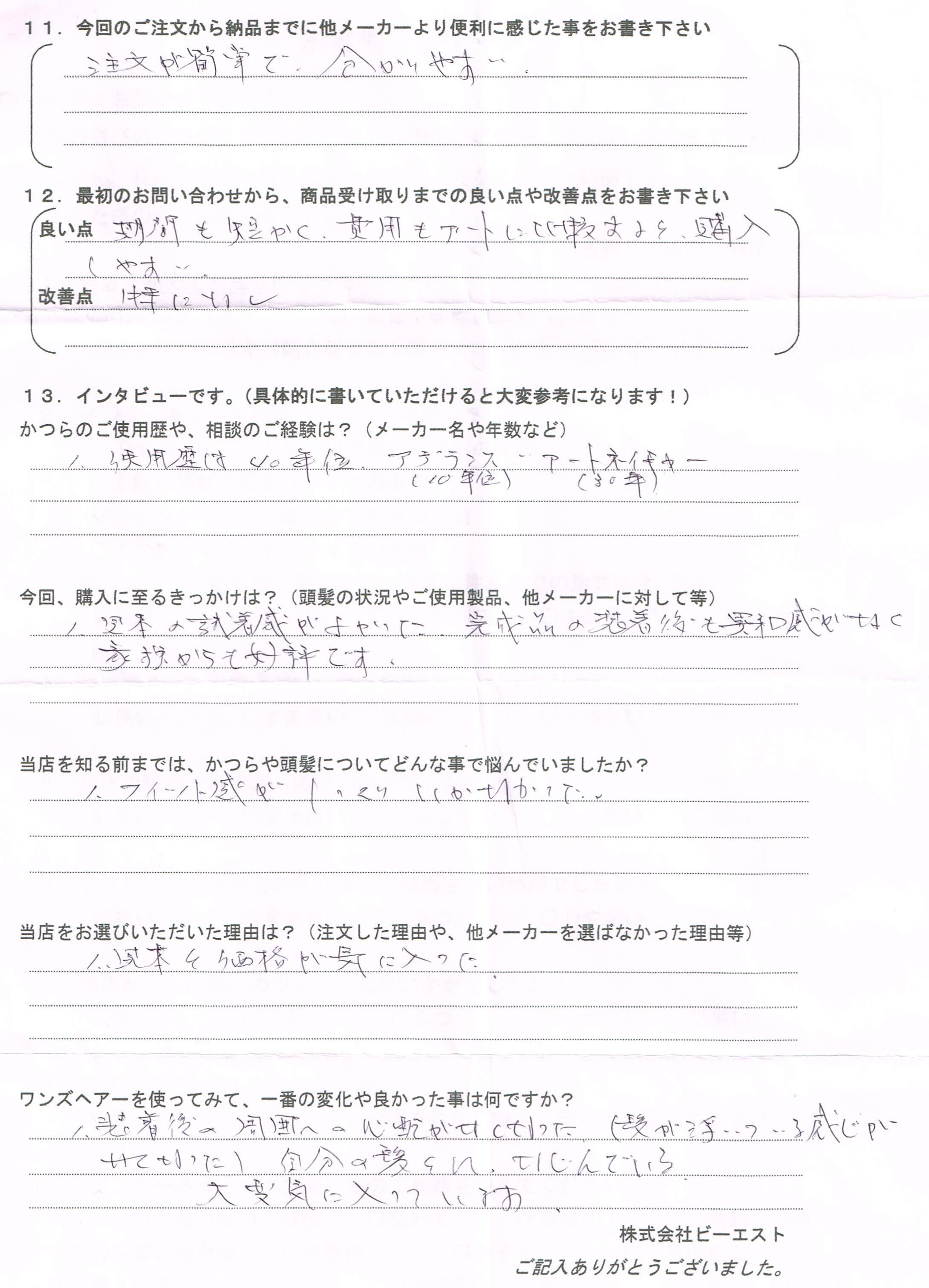 「実際に会っていない御社のかつらが一番評判がいいです。」