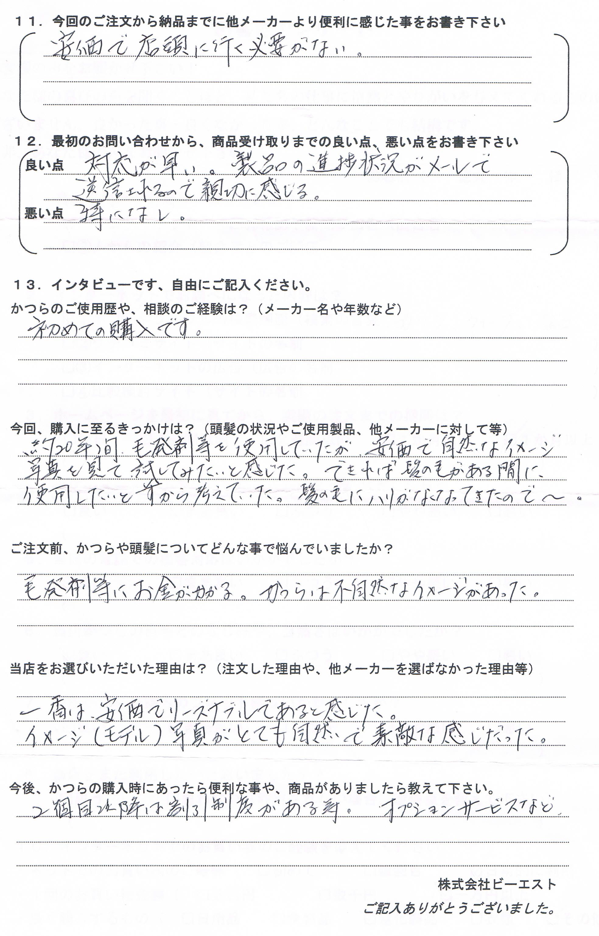 「そろそろかつらかなー?」と当店を見つけてからご注文されるまでは約1か月との事です。