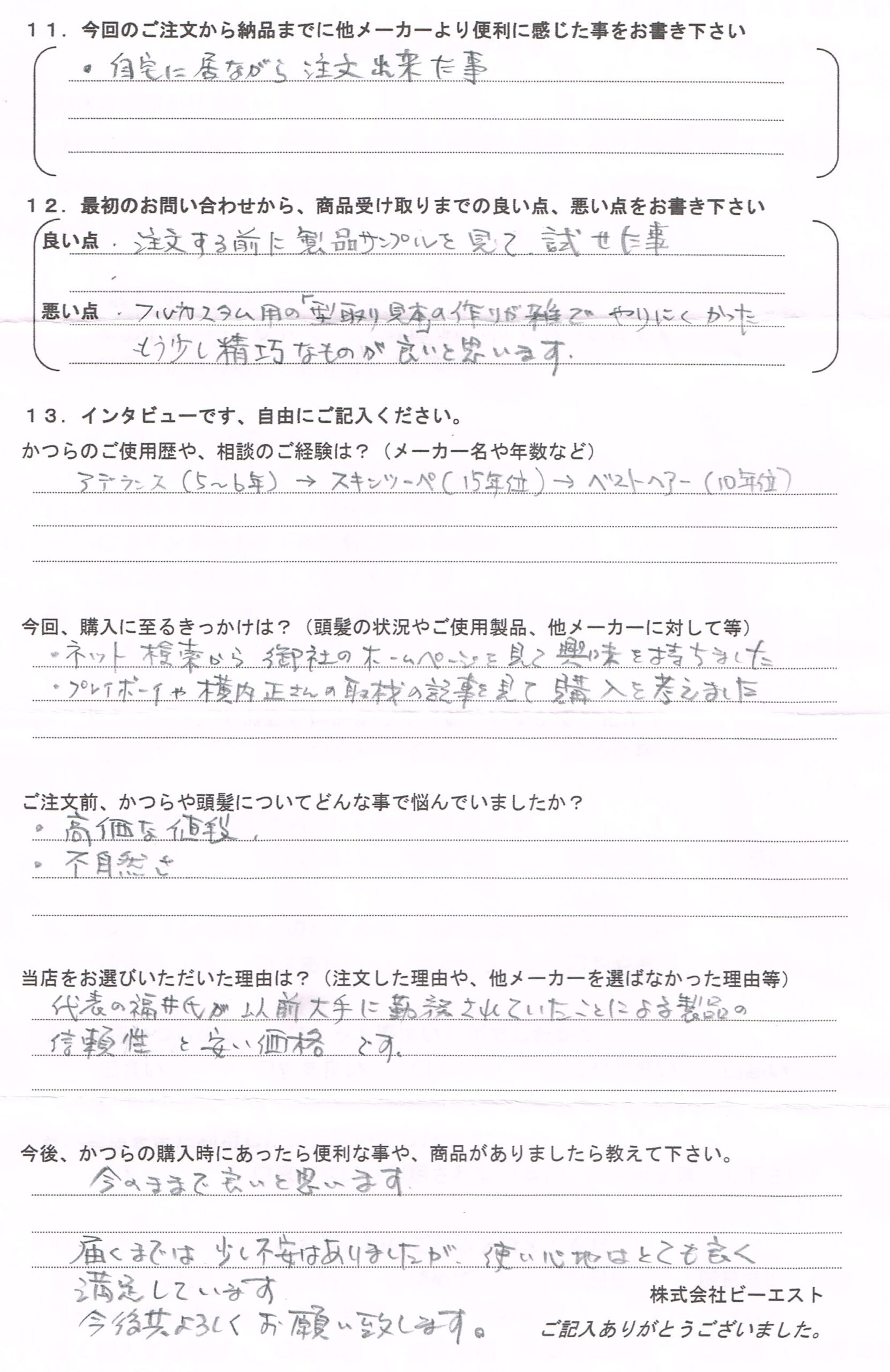 さすがに、かつらメーカーに長年通っていらっしゃるので、的確なご指摘を頂きました。