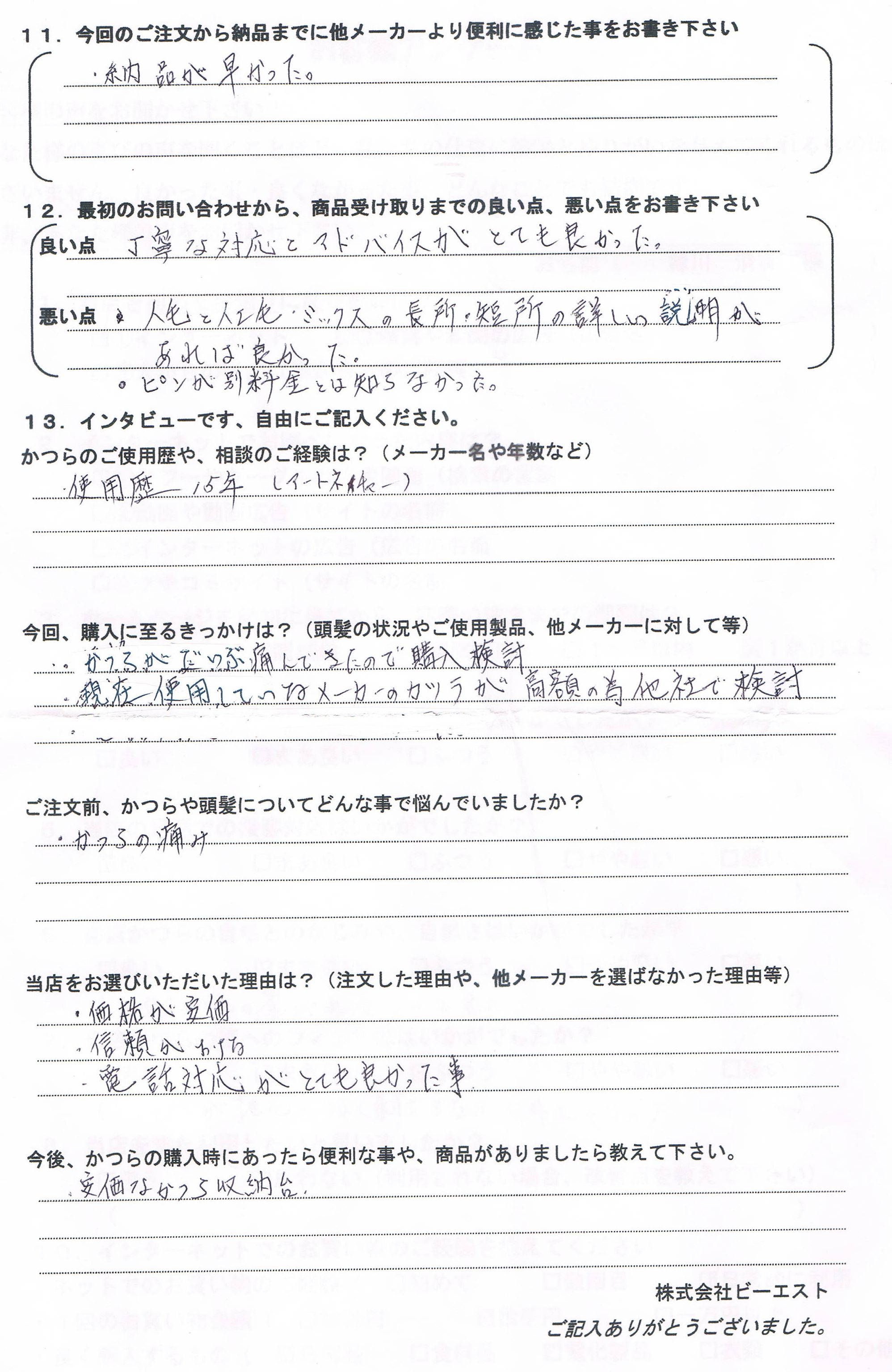 ご注文前までは、10年以上(!)経っていたかつらを着用されているとの事。