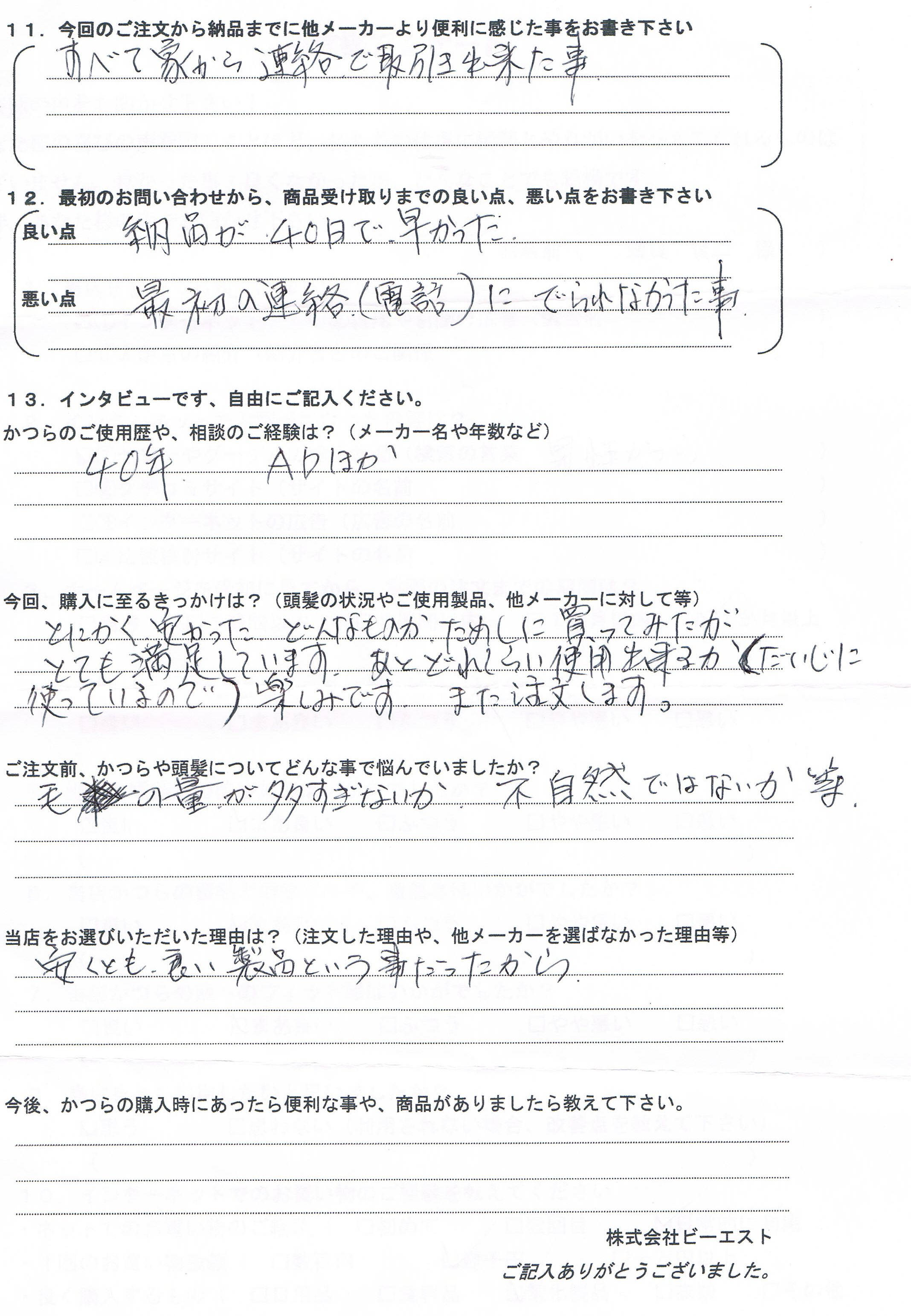 さて、今回はさすがに40年のベテランだけありまして、見本かつらお試し後のお電話でも