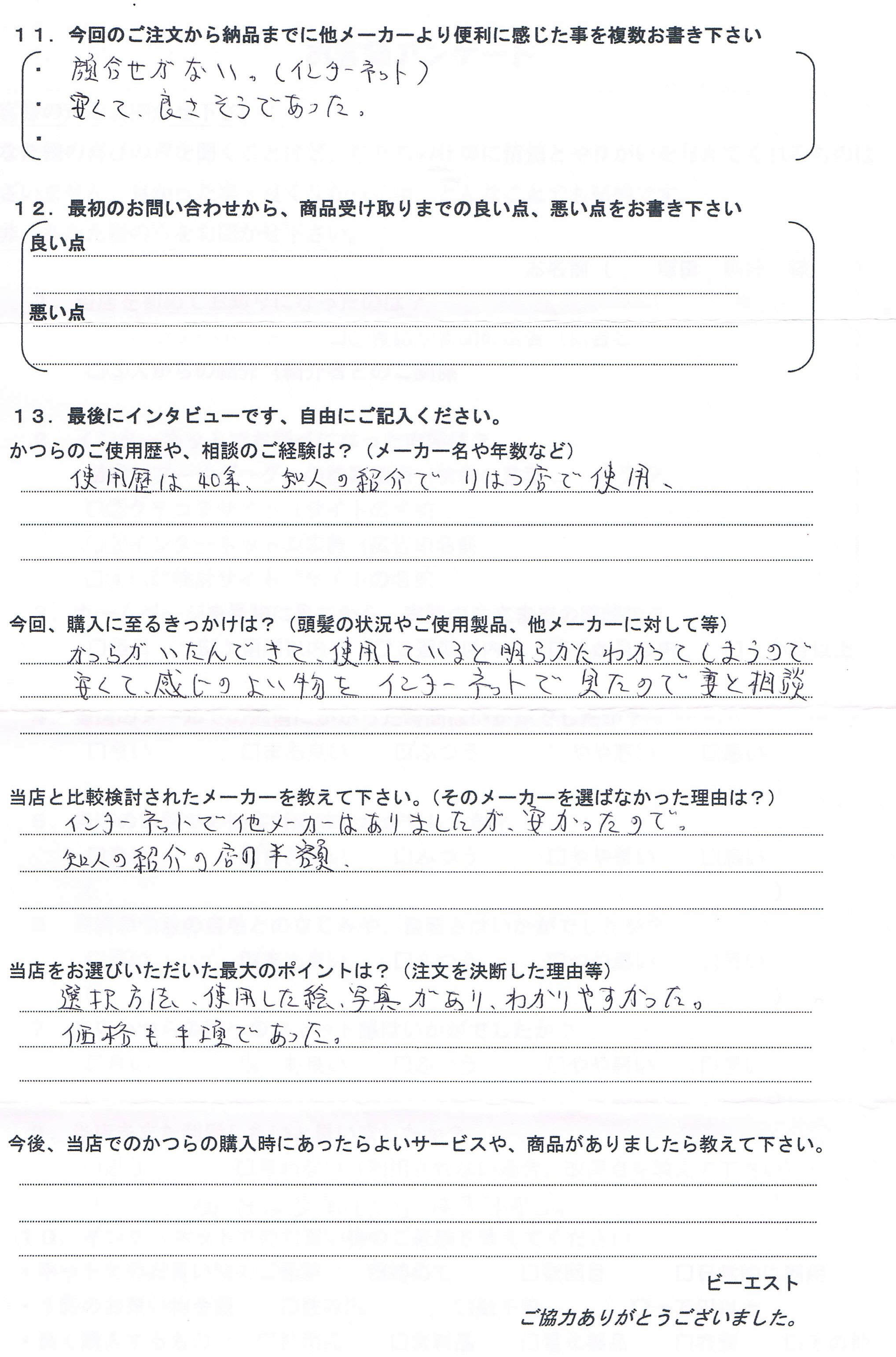 かつらオンラインでは会わなくていい事と、安くてよさそうなので注文しました。