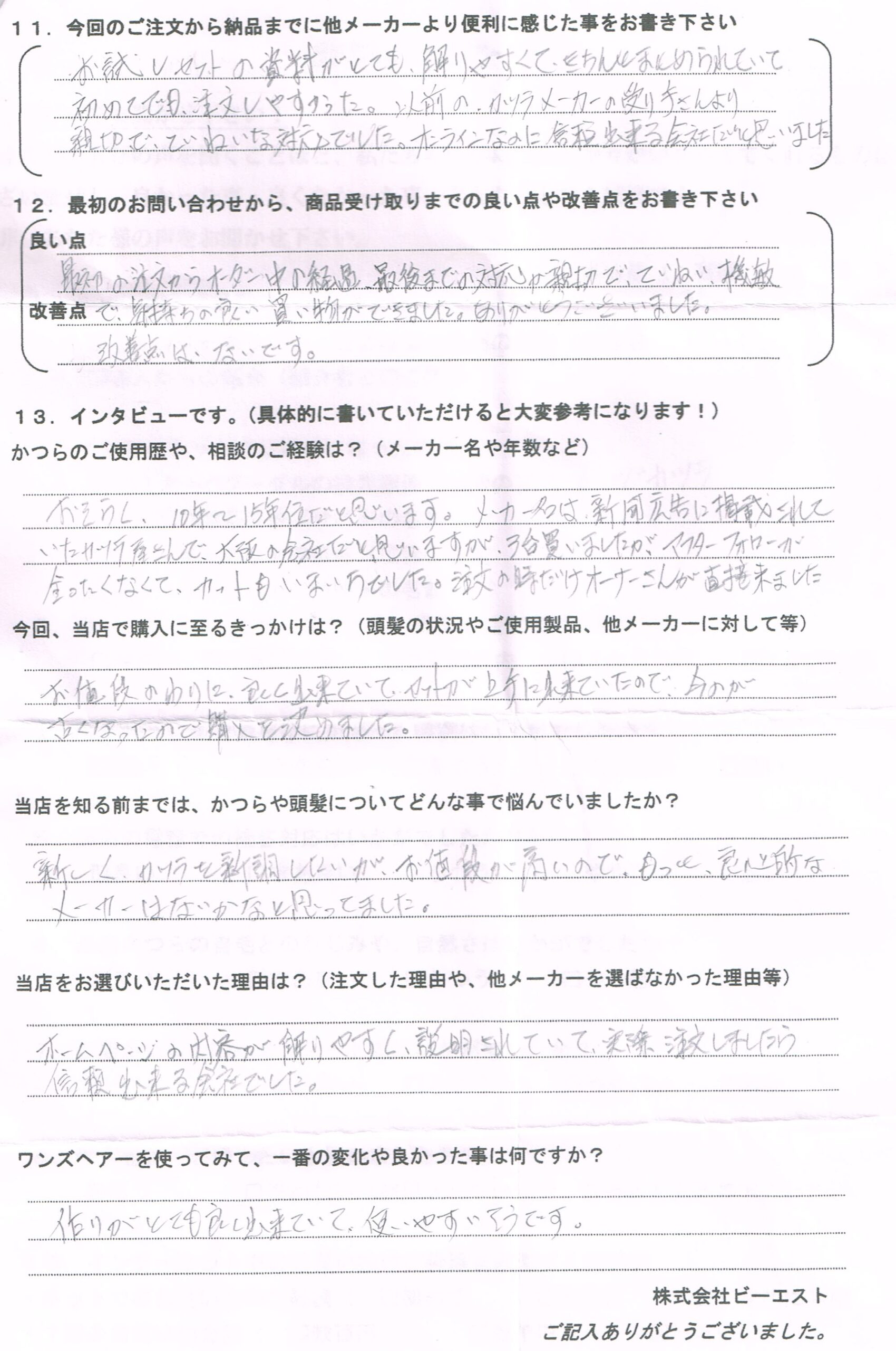 以前のかつらメーカーの売り手さんより親切で丁寧な対応でした。