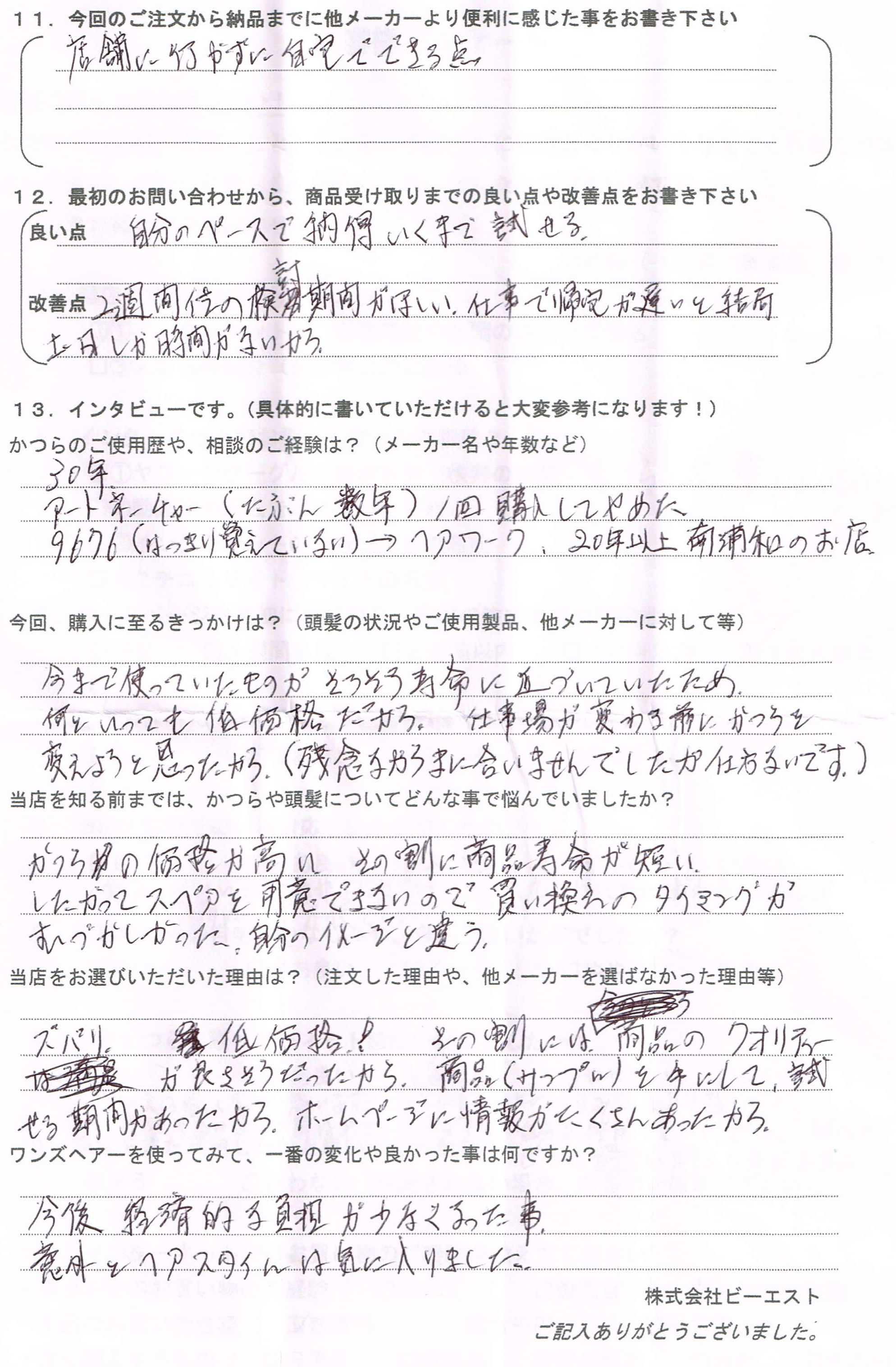 かつらの値段が高いので買換えも思うままに行かなく、当店に辿り着いてのご注文です。