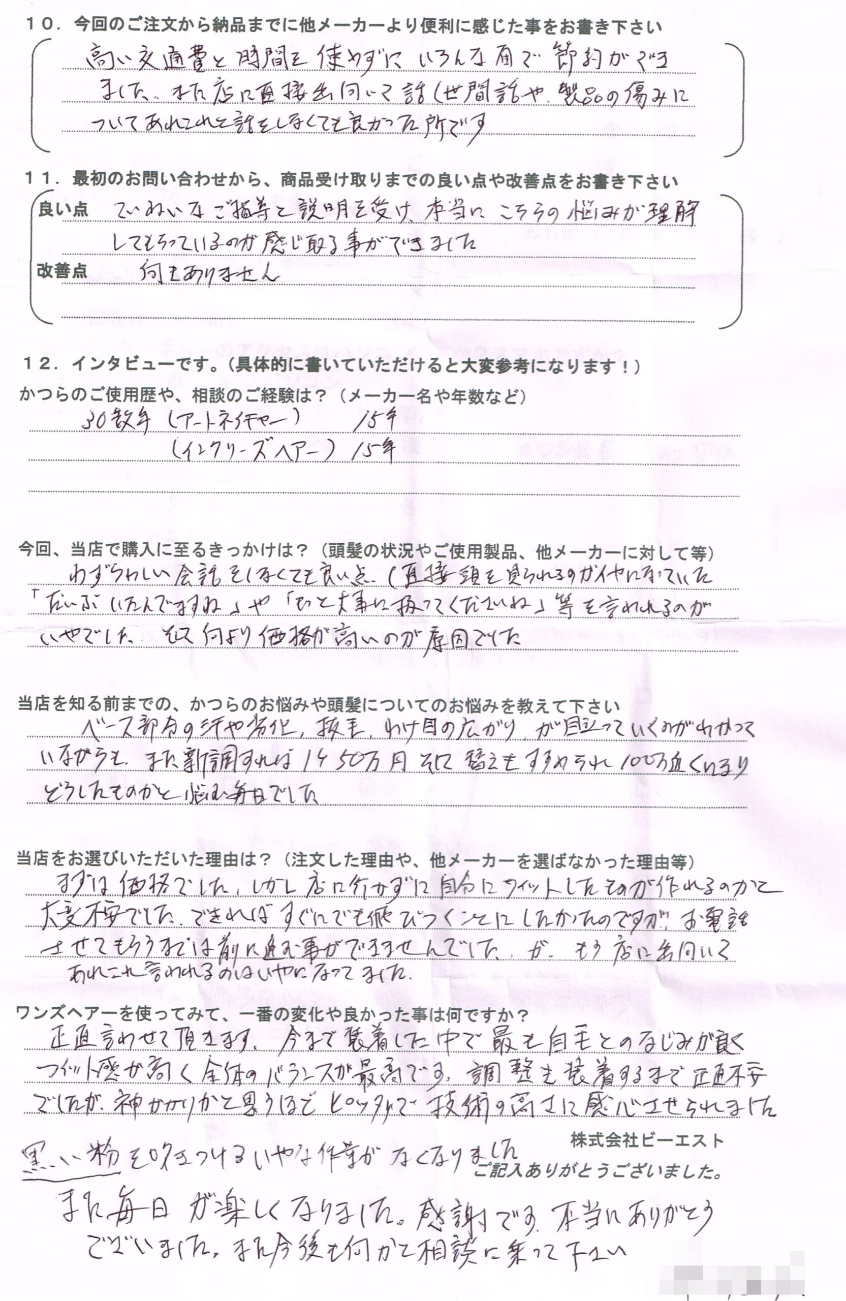 見本かつらのお試しからオーダーかつらの受け取りまで、親身にそしてスムーズに進めて頂きました。