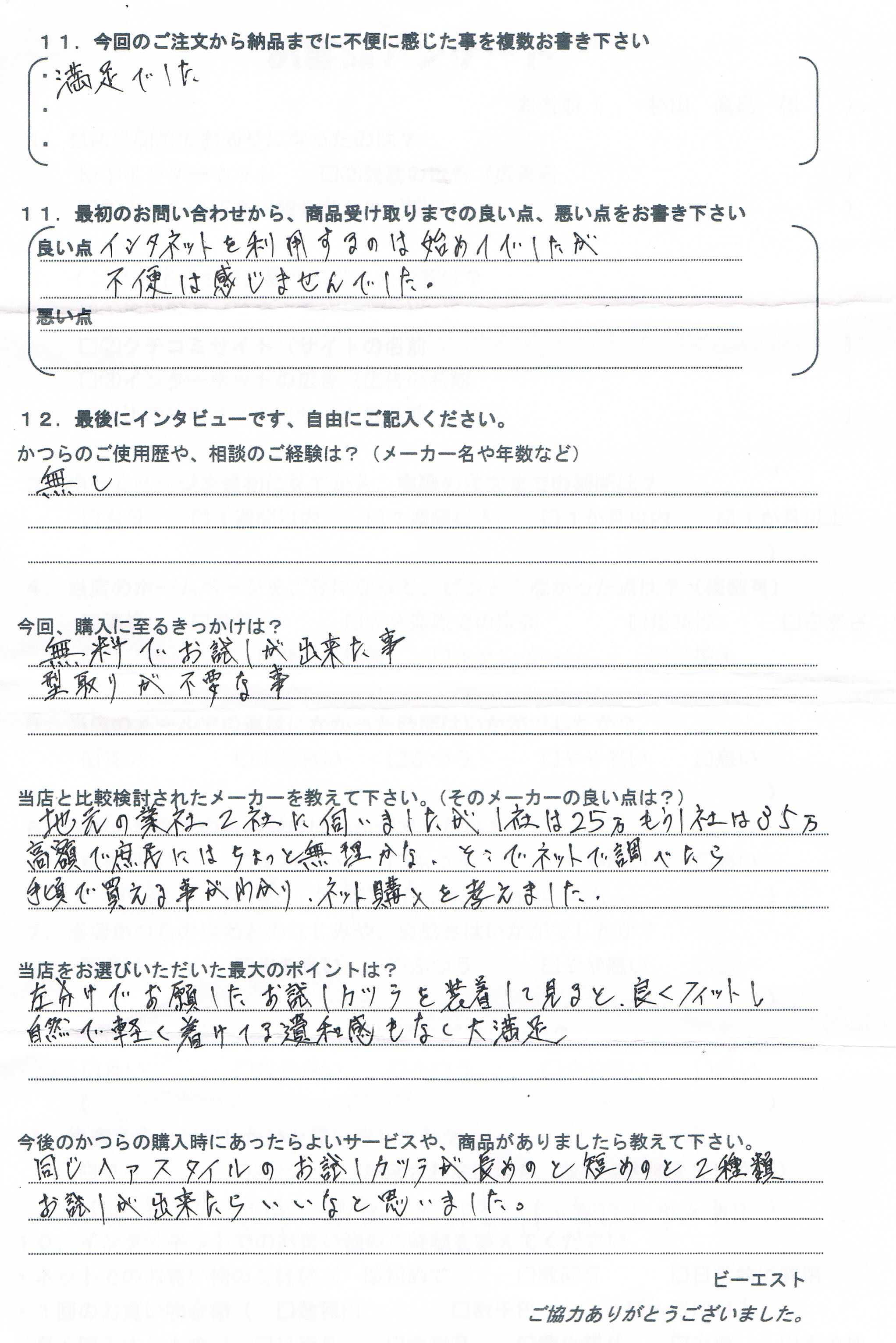 その後、1カ月ほどで完成かつらもお届け出来まして、その後をお聞きする為にお電話したところ