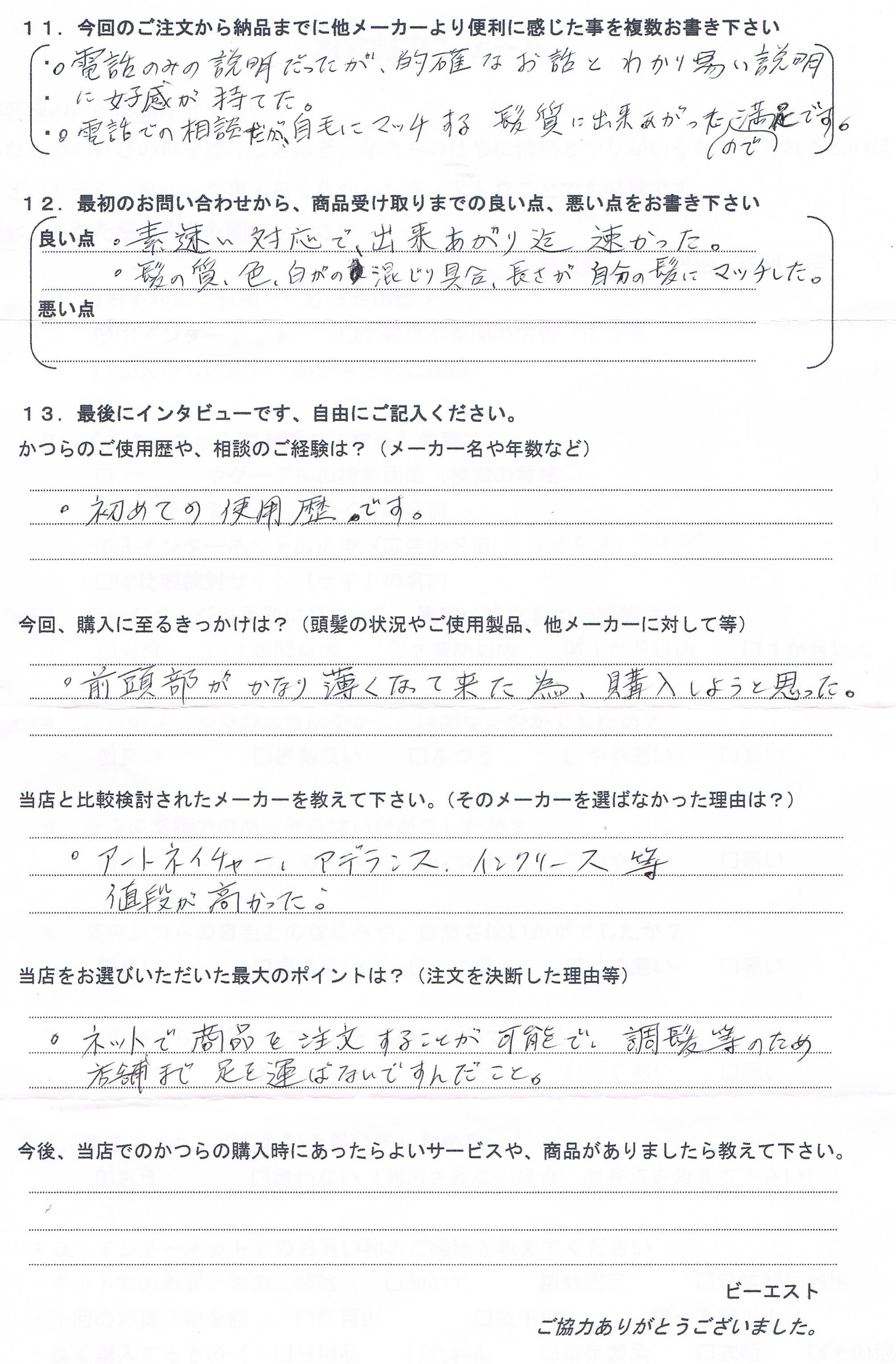 そして、完成したかつらも自毛にマッチする髪質に出来上がったので満足です。