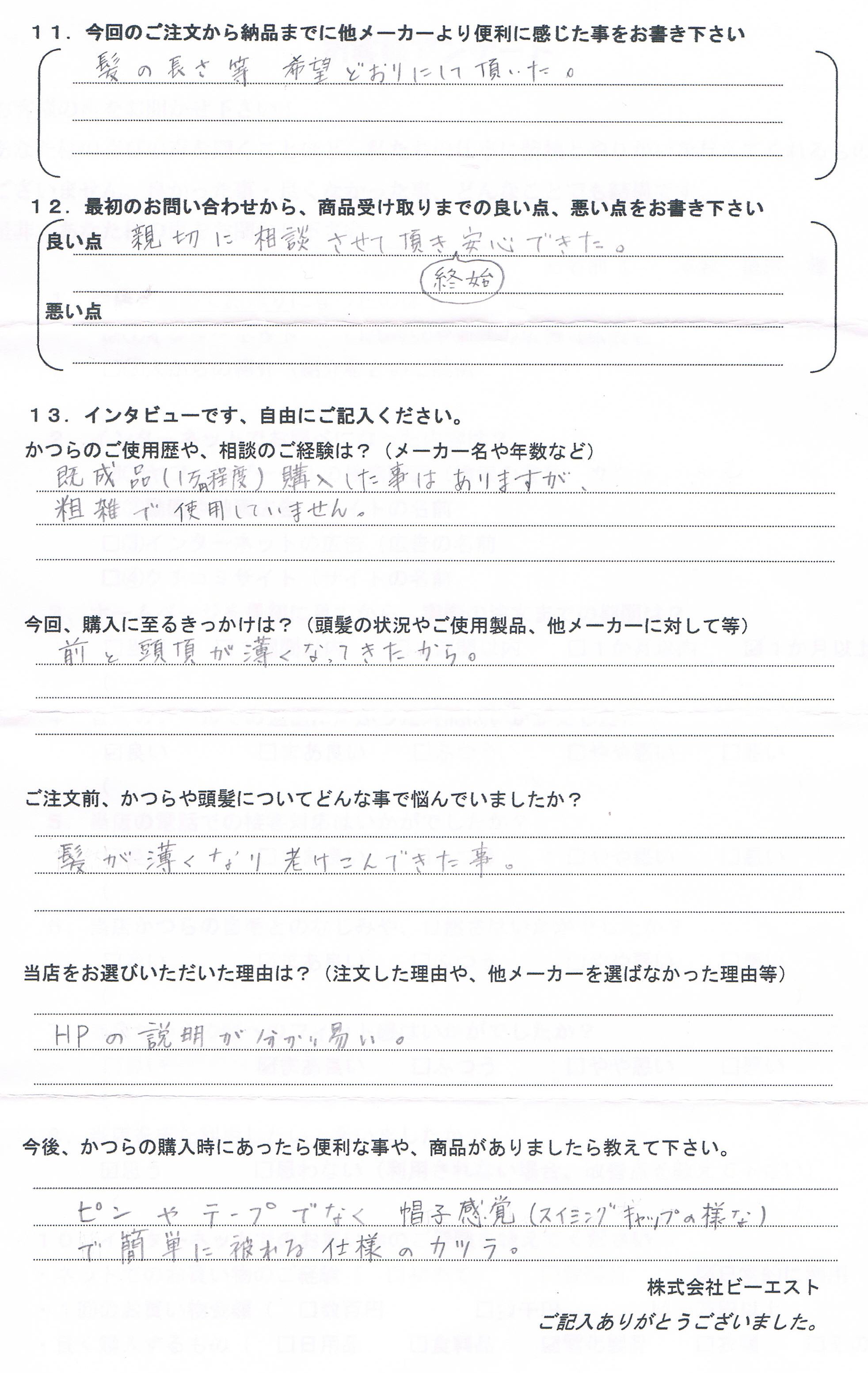 上記のアンケートにもありますように、以前に1万円ほどで全体かつらを買ったことが有るとの事です。