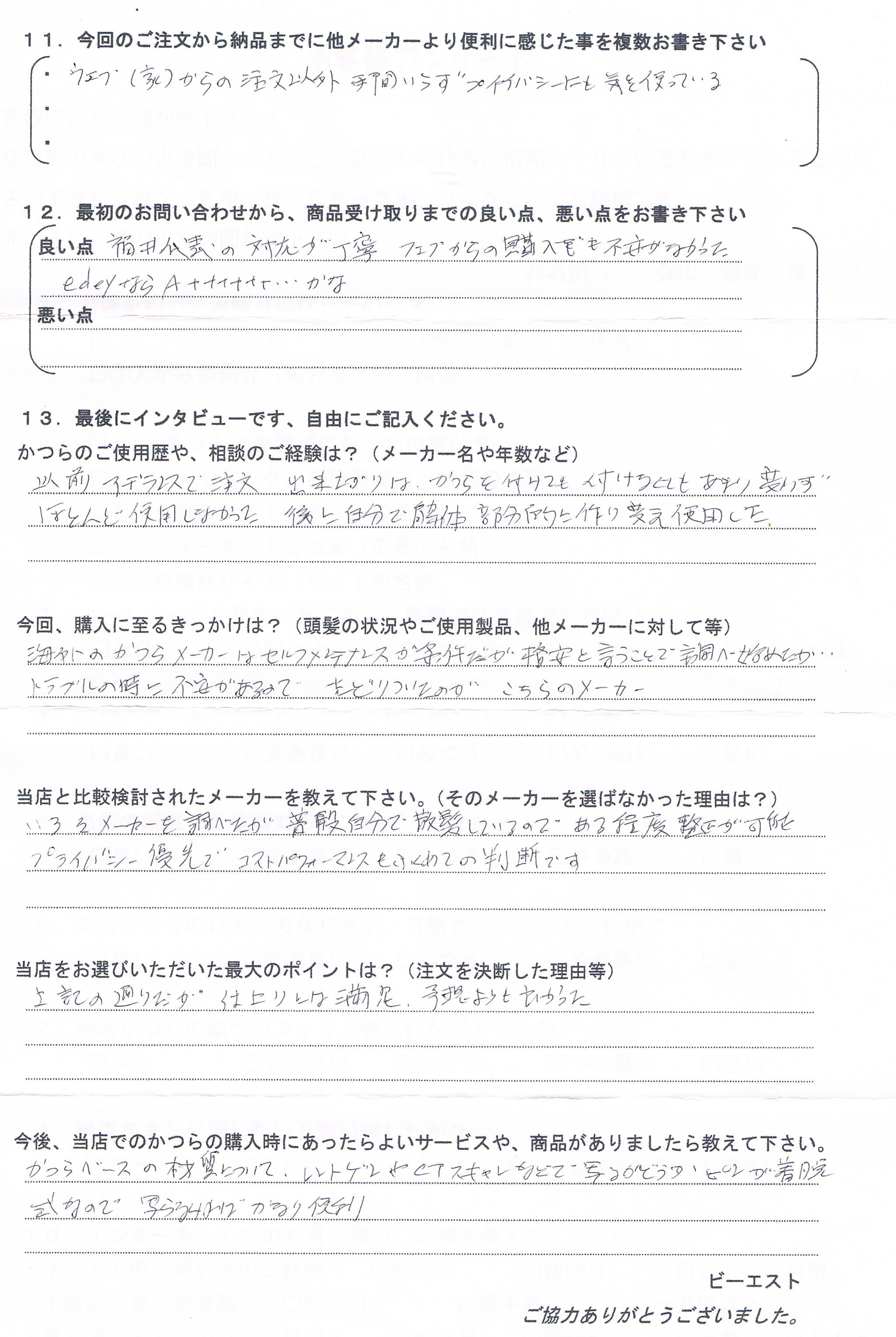 今回のお客様は、以前に大手メーカーでかつらを作ったことのあるお客様です。