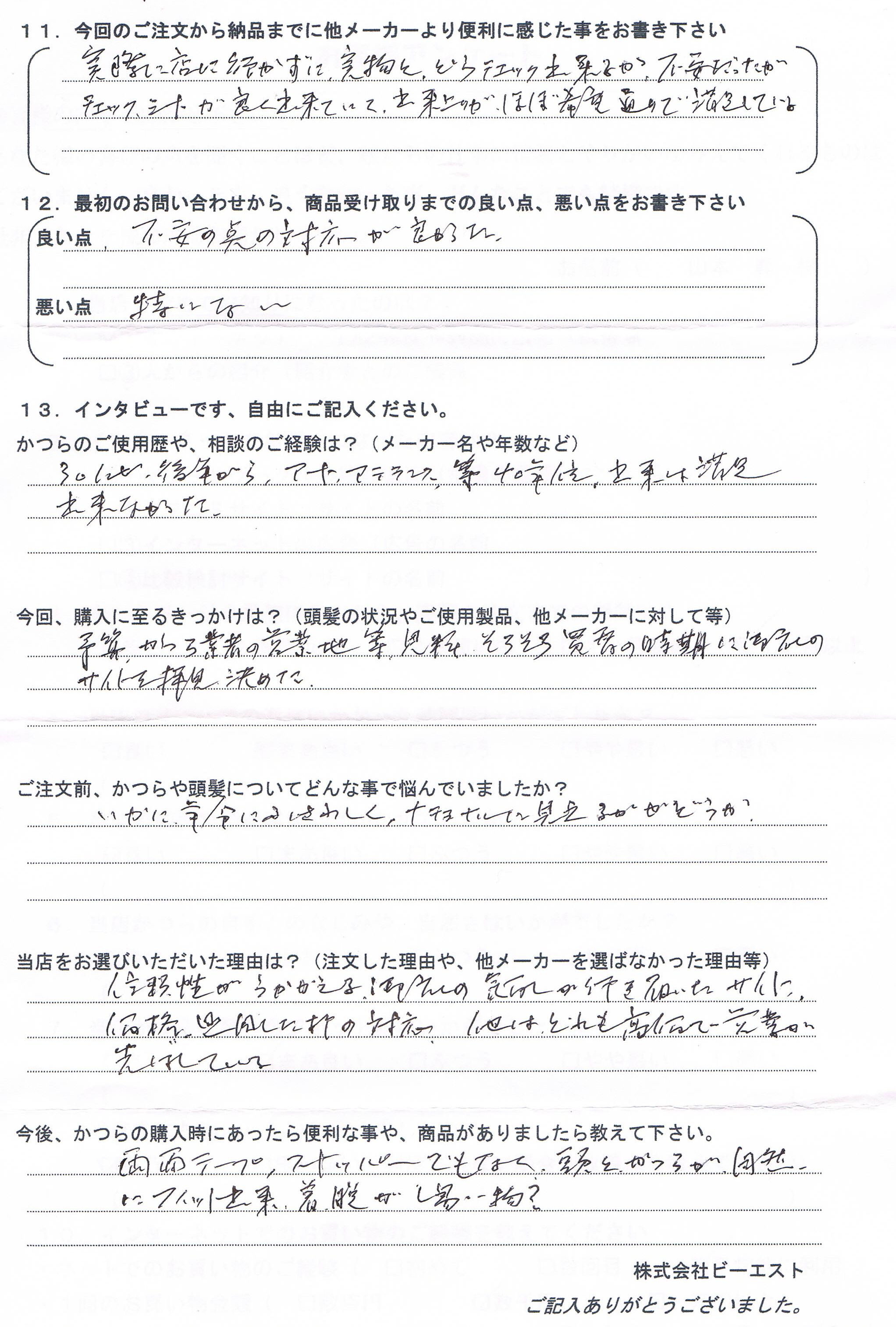 さすがにかつらを長年使用しているだけありまして、初めのお電話から的確に状況やご希望をお話しいただきました。
