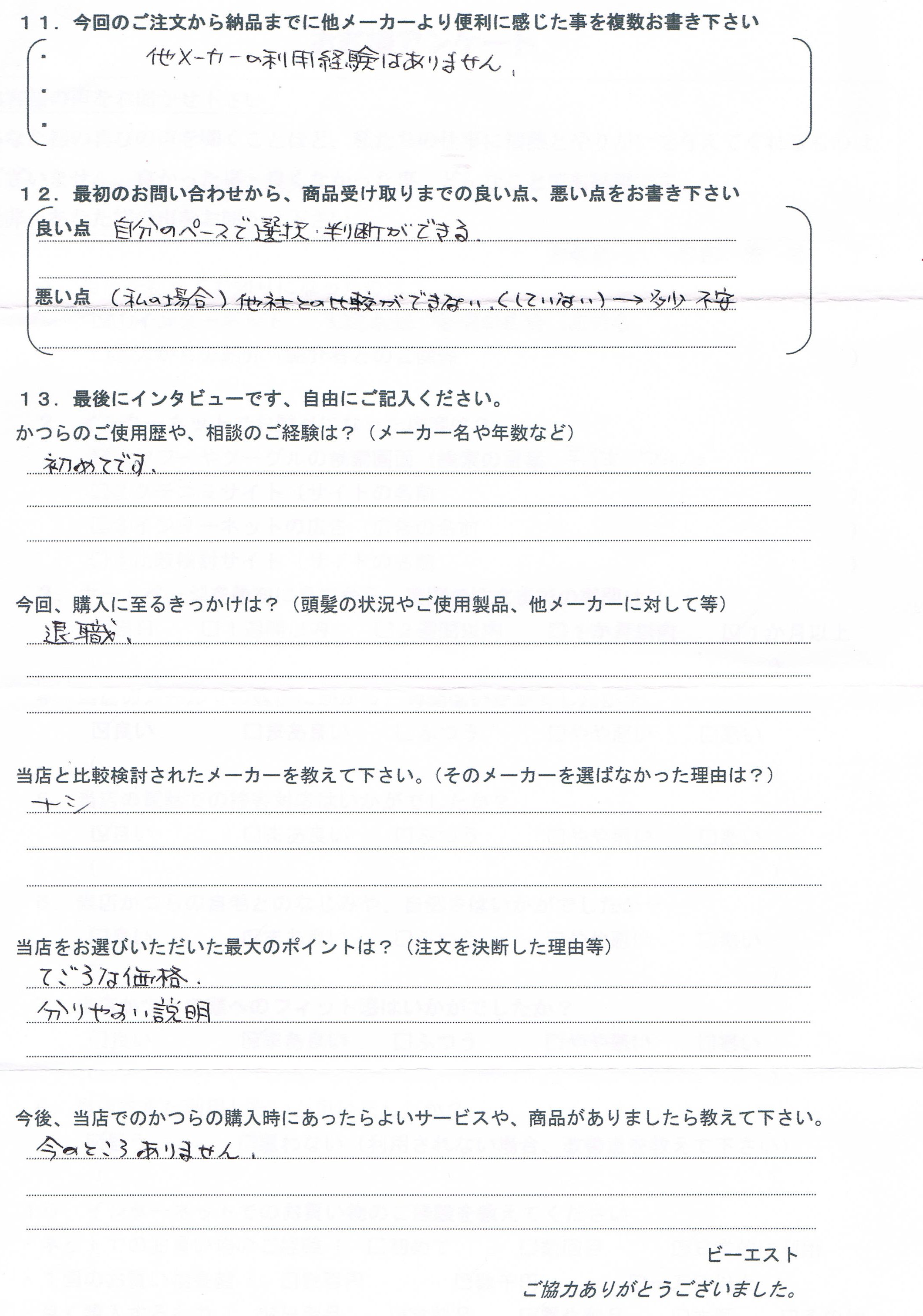 初めての部分かつら・薄毛気になって15年(大阪府)