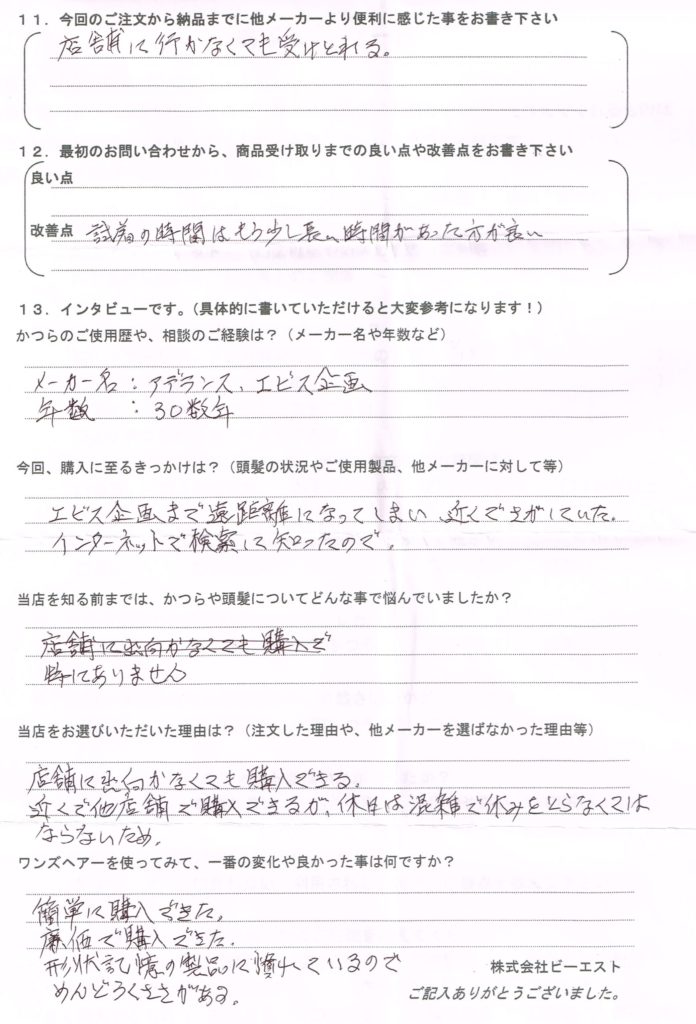 今回は、30年以上のかつら歴で痛みでご注文の60代のお客様です。