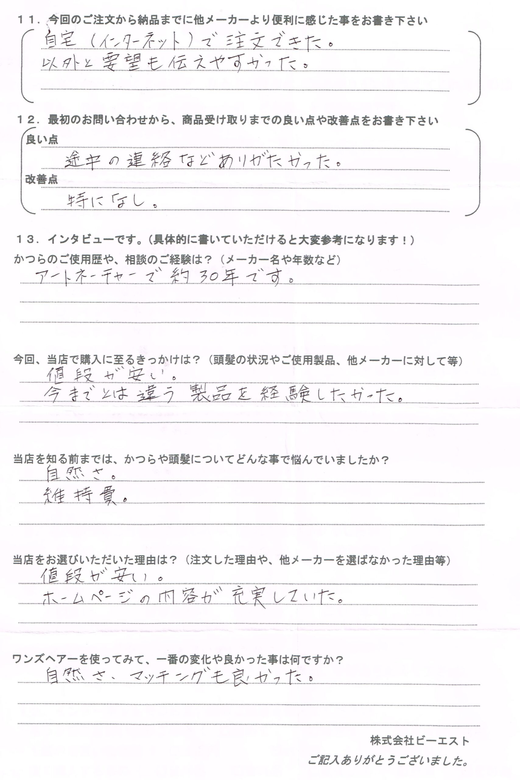 「普段から染めて白髪を目立たなくしているので、かつらに白髪は全く要りません。」