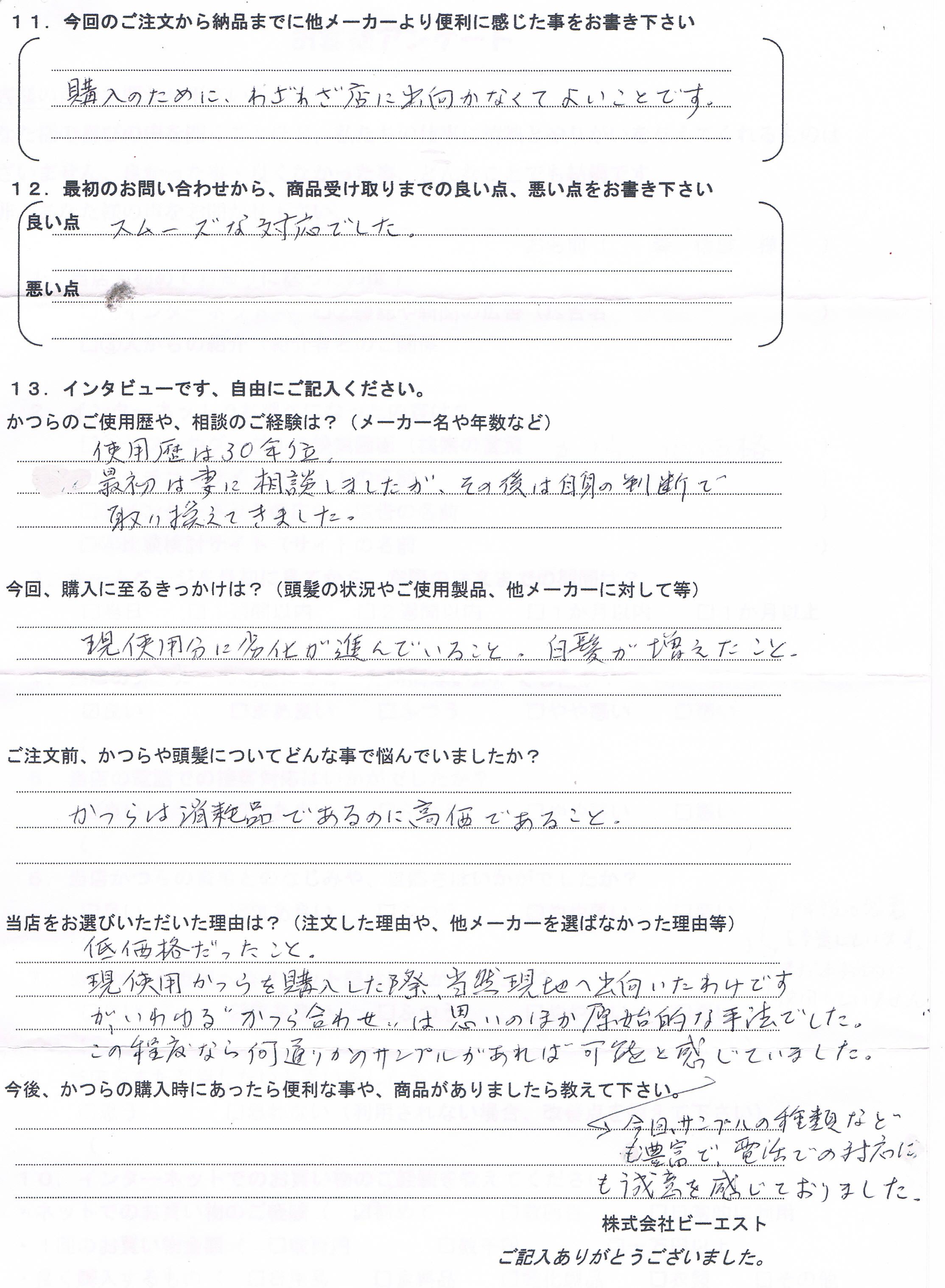 今回注文したのは、現使用分のかつらに劣化が進んでいる事と、自毛に白髪が増えてきてかつらと合わなくなってきたからです。
