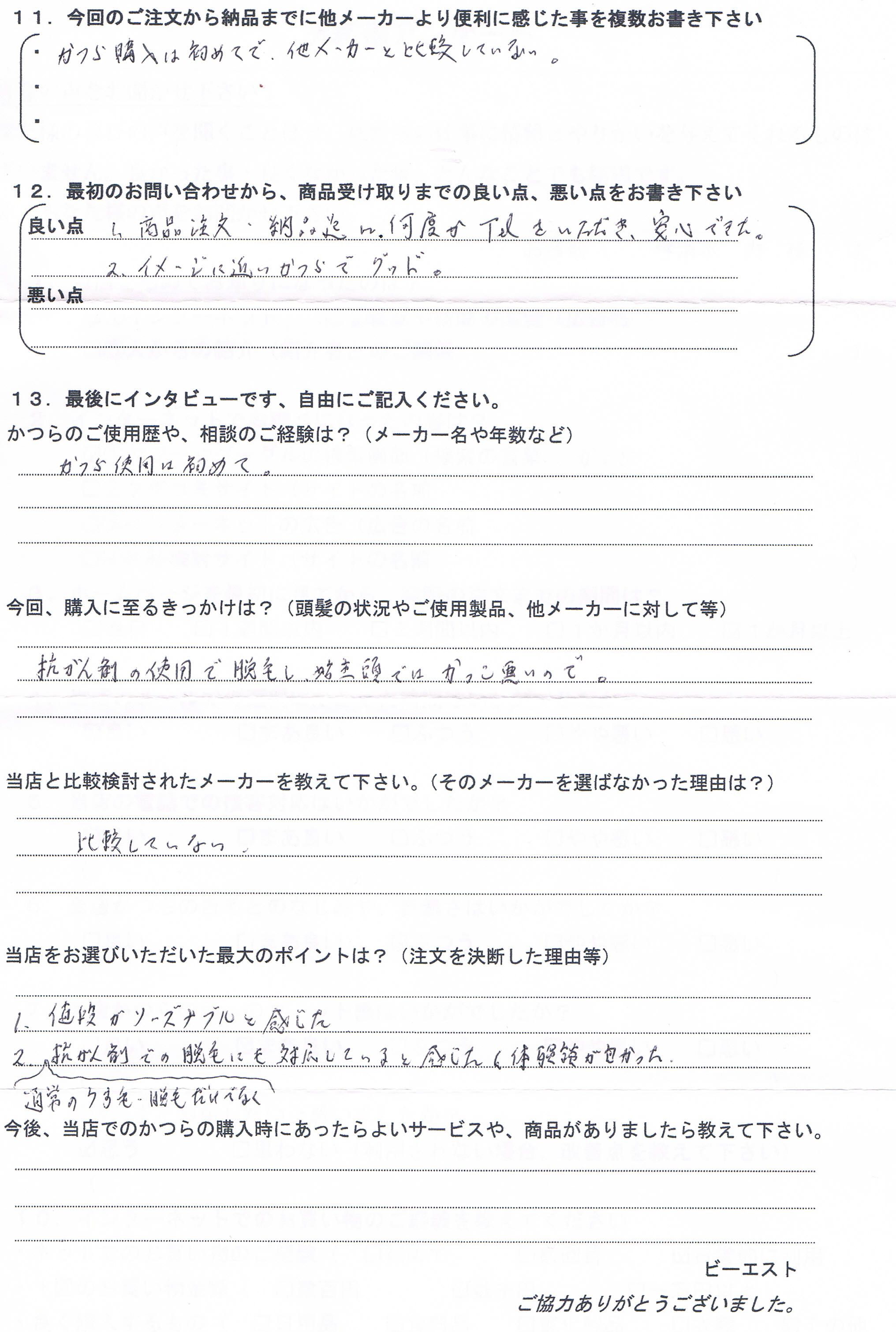 その後、完成かつらも 1ヶ月ちょっとでお届け出来まして、イメージ通りとの事でした。