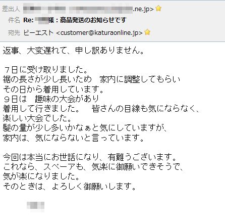 メールの問合せから電話まで気持ちの良い対応でしたので安心して注文できました。