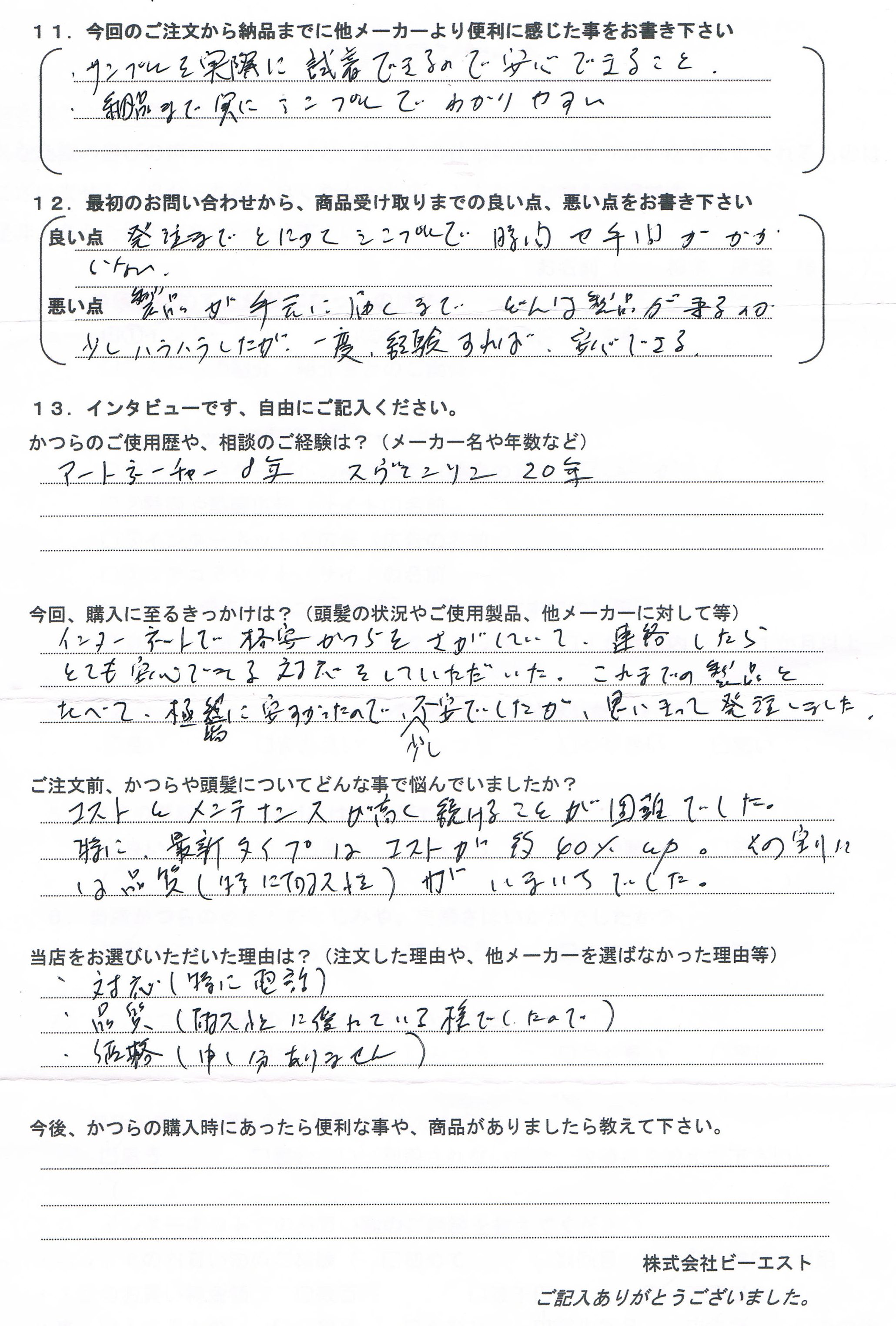 インターネットで格安かつらを探していて、連絡したらとても安心できる対応をして頂きましたのでやってみようと思いましたね。