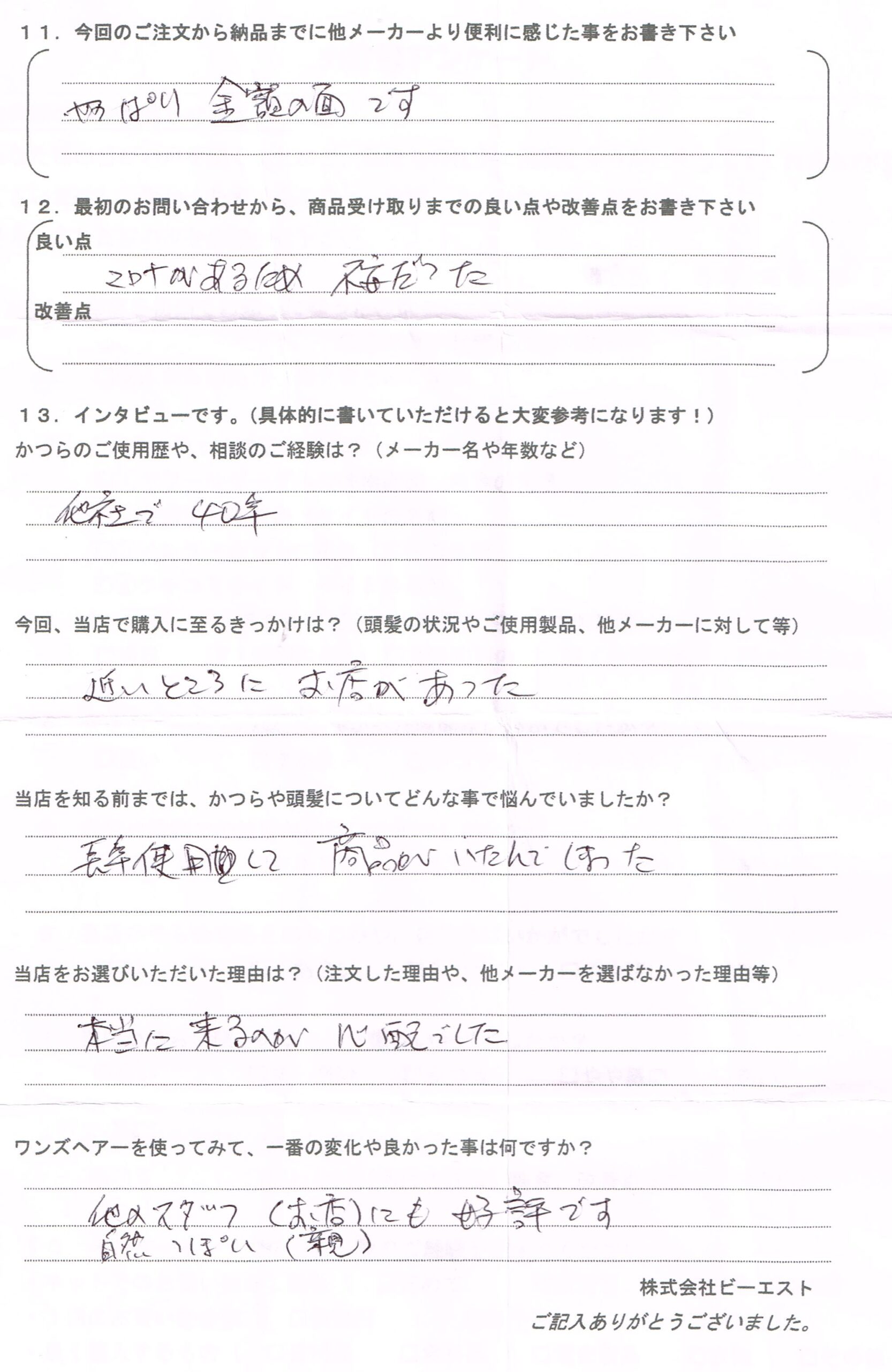 かつらは使い始めて大手数社で40年です。
