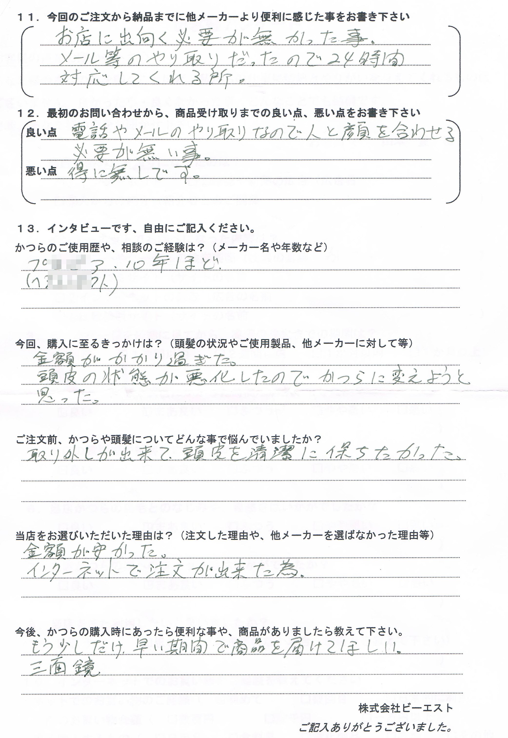ただ、仕事が忙しくてかつらの方はまだ本格的に使用出来ていないのですが、良い商品だと思っております。